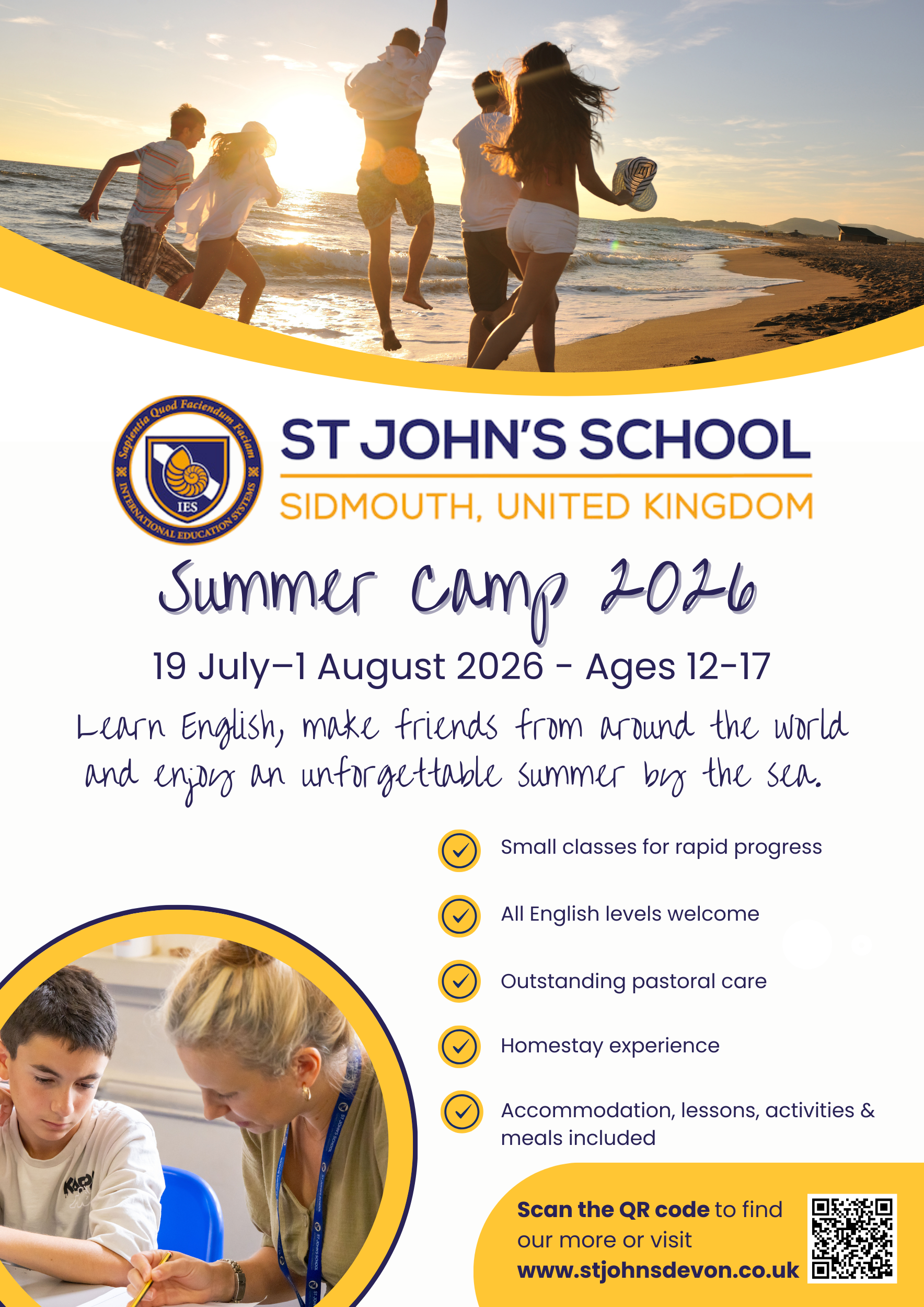 Instead of staying on site, students in 2026 will be placed with carefully vetted local host families in the Sidmouth area. Each host is selected through a thorough safeguarding and suitability process to ensure comfort, safety and a positive experience.